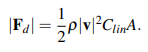 시뮬레이터는 다음 수식을 통해 물체에 대한 선형 항력을 계산한다.