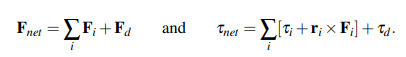 다음과 같은 식으로 알짜 힘과 알짜 토크를 계산한다.