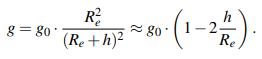 우리는 뉴턴의 중력 법칙에 대한 이항 정리를 적용하고 더 큰 힘을 무시함으로써 높이 h에서의 중력 가속도를 근사화한다.