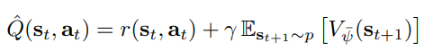 이 업데이트는 Target State Value 네트워크 V¯를 사용하며 현재 State Value Function의 가중치와 일치하도록 Target Network의 가중치를 주기적으로 업데이트할 수 있다.
