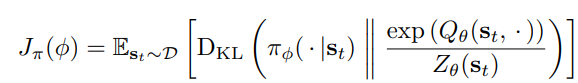 정책 개선 단계에서 우리는 새로운 Q-함수의 지수화를 위해 정책을 업데이트한다. 이러한 특정 업데이트 선택은 소프트 Value 측면에서 개선된 정책을 가져올 수 있음을 보장할 수 있다. 원칙적으로 우리는 어떤 예측이든 선택할 수 있지만, 쿨백-라이블러 발산 측면에서 정의된 정보 예측을 사용하는 것이 편리하다. 즉, 정책 개선 단계에서 각 상태에 대해 다음과 같이 정책을 업데이트합니다.