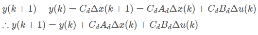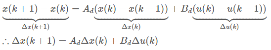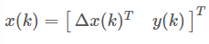 상태 변수 x(k)는 다음과 같이 상태변수 x의 변화량과 출력값으로 구성되어 있다.