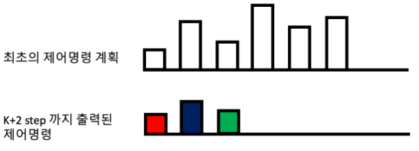 즉, x(k)까지만을 보고 계획한 제어 명령 u(k+1), u(k+2) ... u(k+5) 은 실제 출력과 비교되며 매 step마다 최적화되어 수정된 제어 명령이 출력된다.