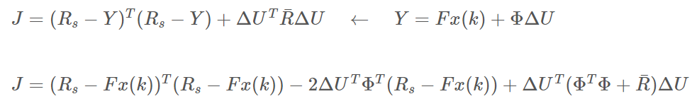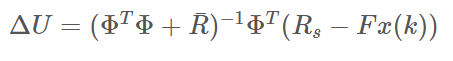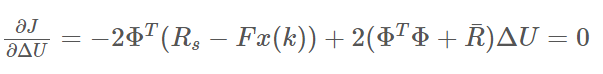 그리하여 목적 함수를 최소화하는 $\Delta{U}$를 찾기 위해 $\Delta{U}$로 목적함수를 편미분하여 0이 되는 $\Delta{U}$를 찾으면 된다.