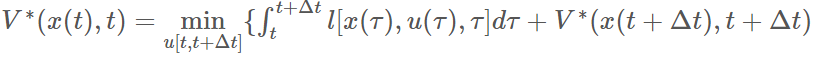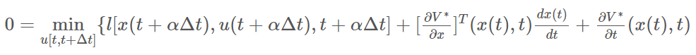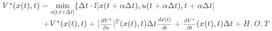 다음과 같이 정리되며 $\Delta{t}$는 매우 작은 값이므로 0으로 극한을 보내면 다음과 같은 Hamilton-Jacobi Equation을 얻을 수 있다.