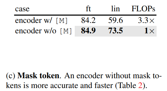 encoder에 mask token을 사용하지 않았을 경우,