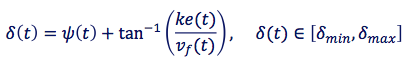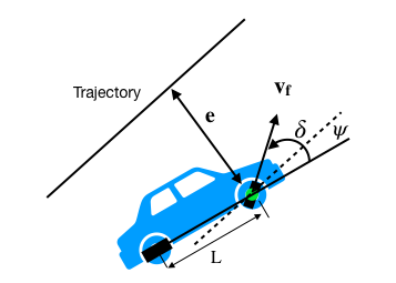 차량의 후륜을 기준으로 삼는 PP와 다르게 Stanley 방식은 전륜을 기준으로 한다. 또한 차량의 Orientation을 고려하지 않는 PP와 다르게 헤딩방향 오차까지 고려하는 그야말로 굉장한 알고리즘