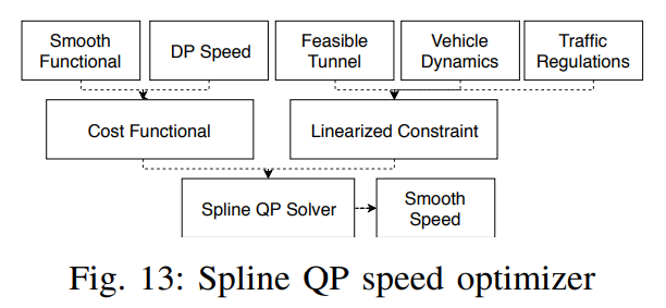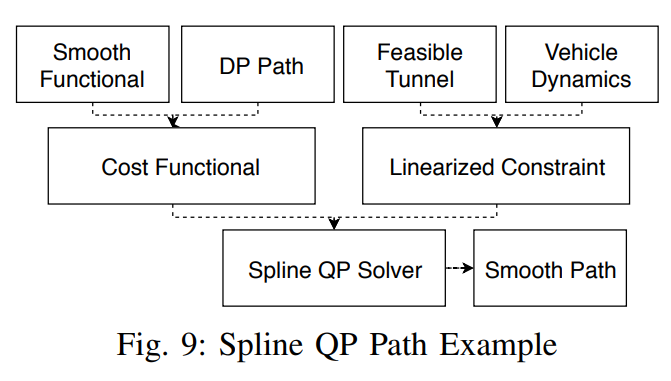 Quadratic-programming-based smoothing spline solver는 판단을 따르는 스무스한 경로와 Speed profiles를 만드는데 자주 쓰인다.