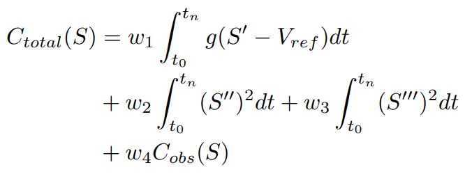 다음과 같은 Cost Function을 통해 Cost가 가장 작은 스무스한 Speed Profile을 생성해낸다.