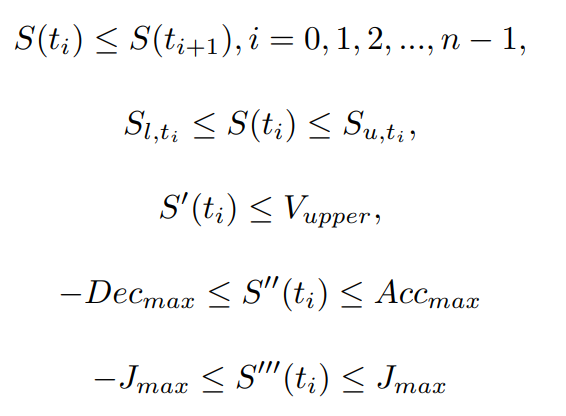 QP Speed Profile은 다음과 같은 제약 조건을 만족해야만 한다.
