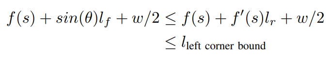 f''(s)와 f''(s)의 범위 제한은 곡률 및 곡률 도함수와 관련이 있기 때문에 동적 실현 가능성으로 사용될 수 있다. 경계 제약 조건(앞에꺼) 외에도, 생성된 경로는 ego 차량의 초기 횡방향 위치와 (f'(s0), f'(s0), f''(s0))과 일치해야 한다.