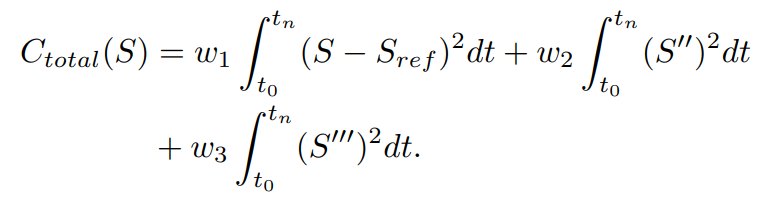 다음과 같은 Cost Function을 통해 Cost가 가장 작은 스무스한 Speed Profile을 생성해낸다.