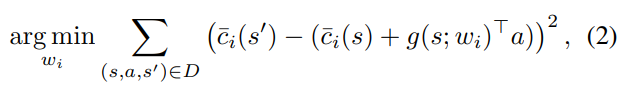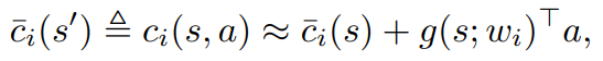To solve (3) we now substitute our linear model for $c_i (s,a)$, and obtain the quadratic program