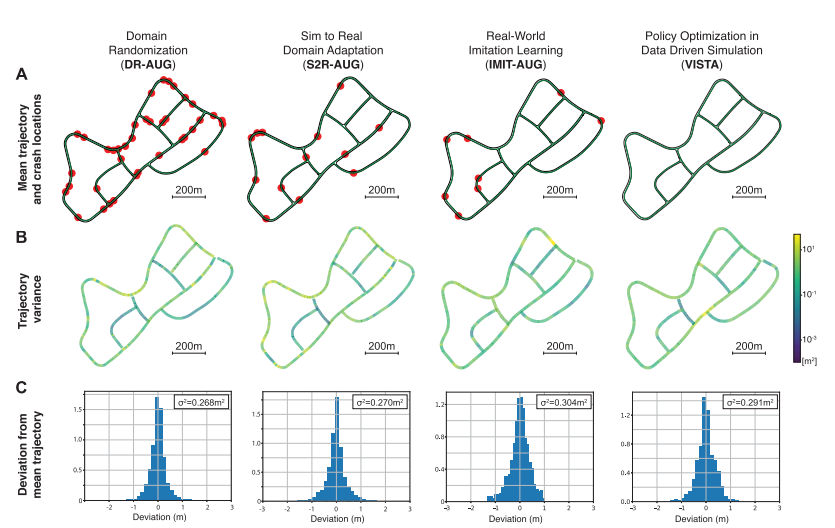 실제 주행 데이터에서 광범위한 차량 위치와 방향에 대한 학습 데이터를 종합하여 해당 도로와 일치하는 새로운 경로를 생성하고 다른 도로로 이동하는 학습 정책을 생성함
